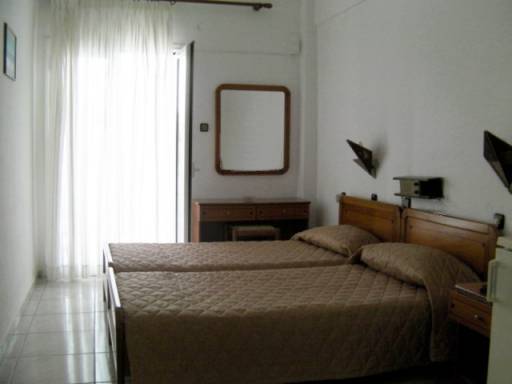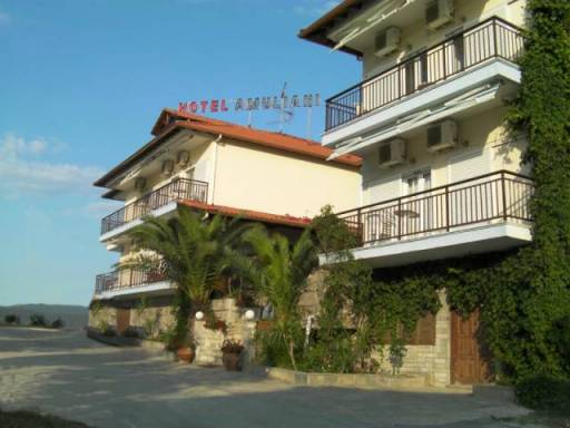 Inside the village and 50 meters from the sea, "Ammouliani" Hotel awaits to accommodate you in one of its 25 rooms or in one of it's 5 Superior rooms at the most reasonable prices. All the rooms offer balconies, with marvelous seaview and Mount Athos (Aghion Oros) view, air conditioning, television, direct telephone access, radio, refrigerator, hair dryer, room-service and breakfast. In the facility we also offer to our costumers private parking. Have a coffee or drink or a snack at the hotel’s bar seaview balcony, enjoying total relaxation. In the hotel there are 2 rooms and one lobby toilet designed for the needs of persons with motion disorders Considering our four legged friends the hotel allows the entrance to animals, as long they respect the vacations and calmness of our hotel clients. The personnel of "Ammouliani" Hotel are ready to show you greek hospitality, welcome you and assist you in order to discover the beautiful island, and have an unforgettable vacation.