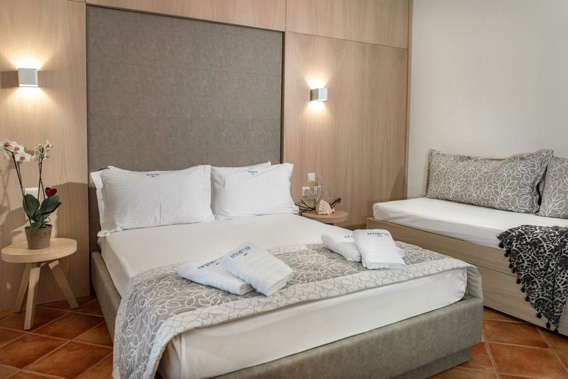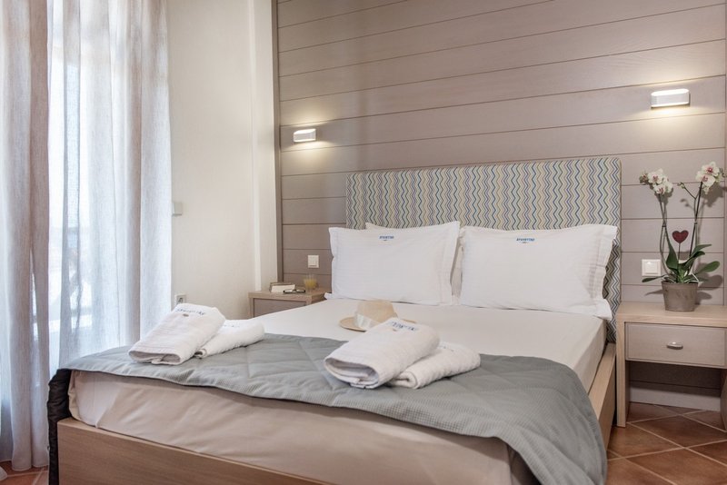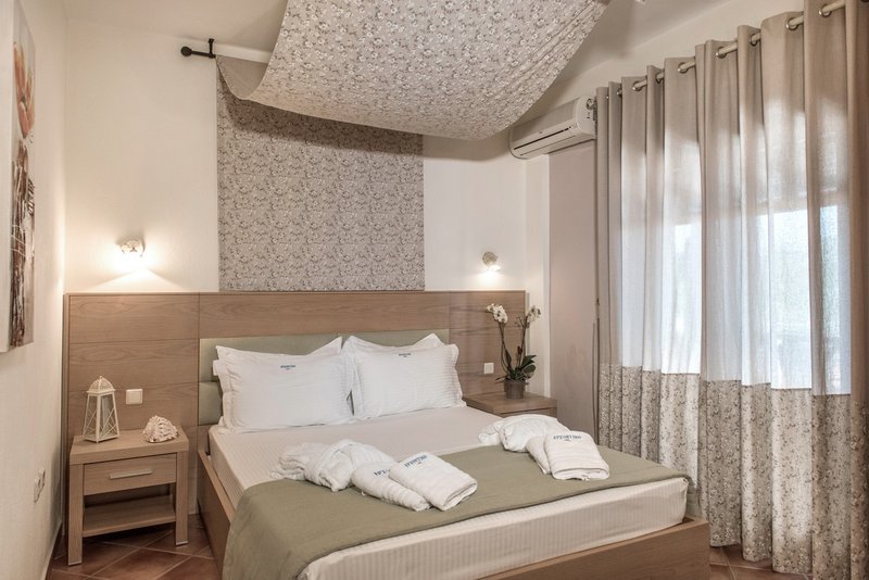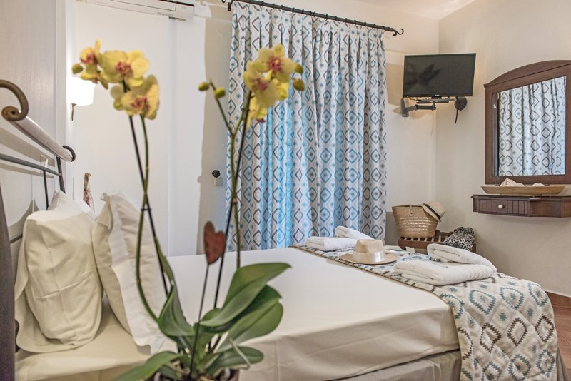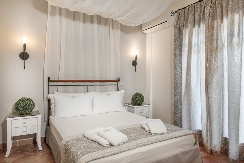 In a quiet, hospitable and discreet environment, the functionality and the sense of familiarity ensure the requirements for a comfortable and pleasant stay. It has fully equipped rooms with a panoramic view and prim common spaces (reception, breakfast room, bar), with emphasis on cleanliness. The unexceptionable service, the rich breakfast by the local products and the personal care are some of the small surprises that wait for you. The areas The areas of Archontiko are totally adapted to the rest decoration of the building and emit from the first moment the sense of hospitality and unexceptionable service. Beginning your day with a rich breakfast at the breakfast room or drinking an afternoon drink at the bar, you'll realize that Archontiko isn't known only for its pleasant stay but also for its further valuable services. The rooms The rooms of Archontiko are elegant and specially decorated in a light style that transforms the accommodation to a totally relaxing experience. A perfect combination of colors and textiles make the atmosphere homely and hospitable, while the railed beds give their own romantic touch to the area.