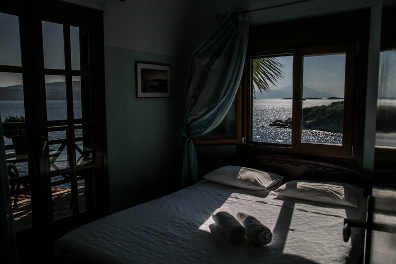 Villa Chara is situated on the Amouliani island in the peninsula of Chalkidiki. It is just 10 meters away from the sea and it has a magnificent view to Mount Athos. First floor 55sqm with kitchen and sitting room, convertible sofa, one single bedroom, WC, spacious patio with view to the sea.