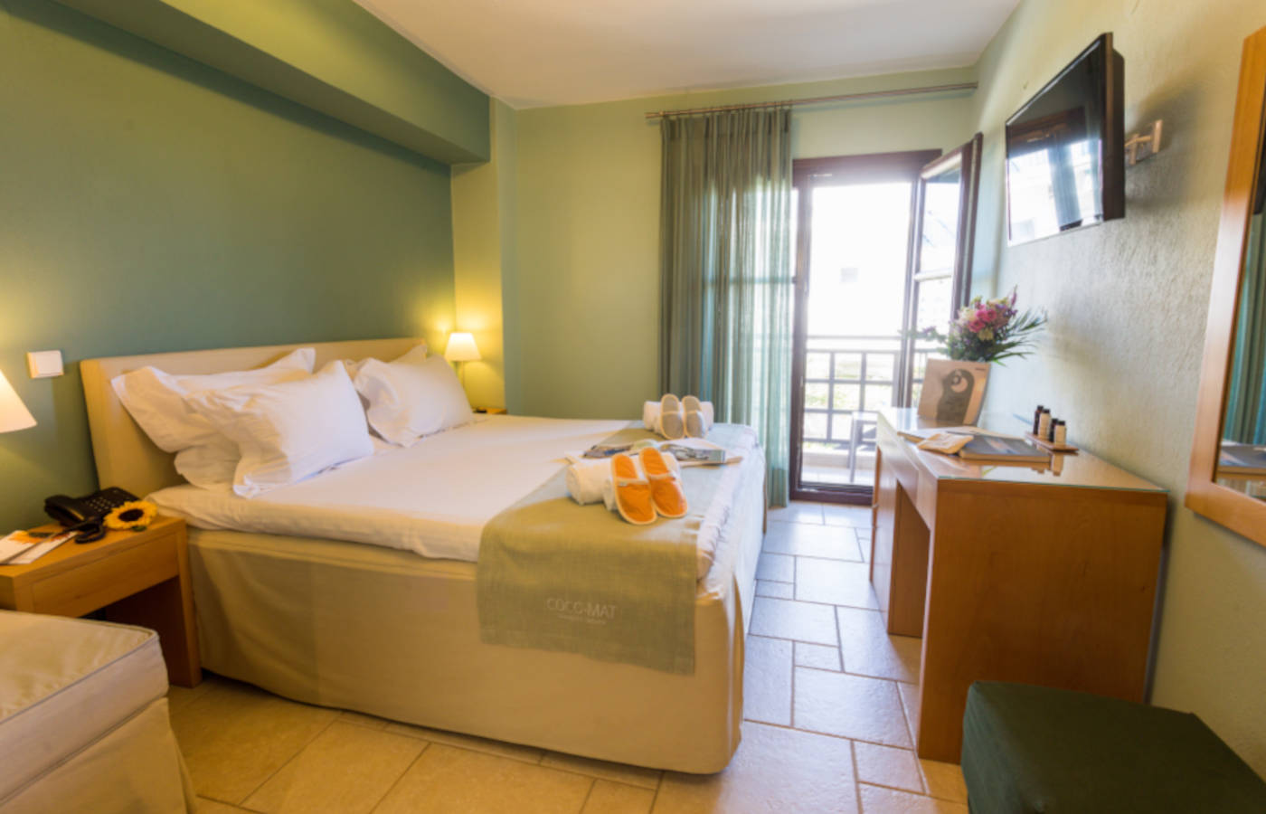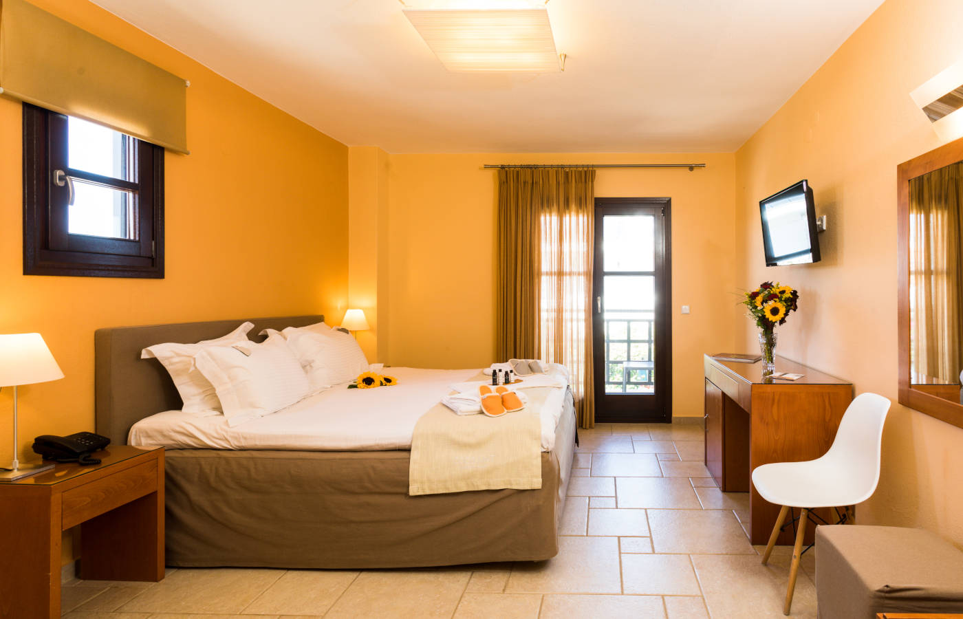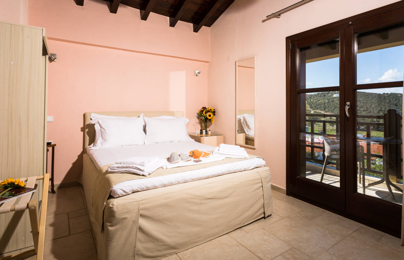 The greek flowers of nature was used in order to decorate the guesthouse’s rooms: The iasmos, the iris, the hibiscus, the dianthus, the anthemis the amaryllis, the althea, the hyacinthus, and the valeriana, are available for visitors to enjoy. Harmonious colors on the walls, simple lines in furniture, minimalist lighting, branded personal care products and the most basic of all ecological sleep systems, are available. The curtains, the white goods, the duvets, are selected from natural materials in similar shades and are combined harmoniously with each other.
