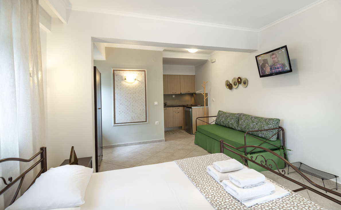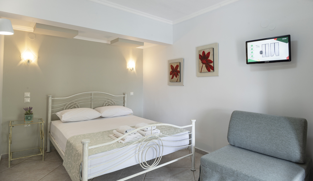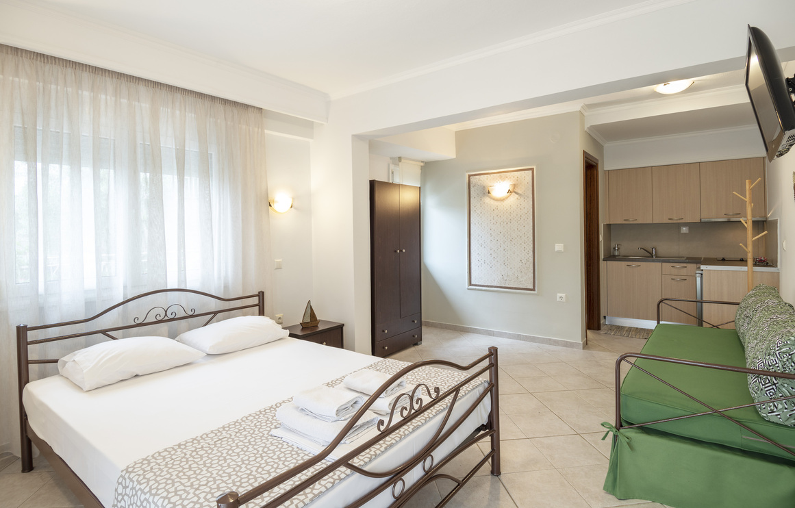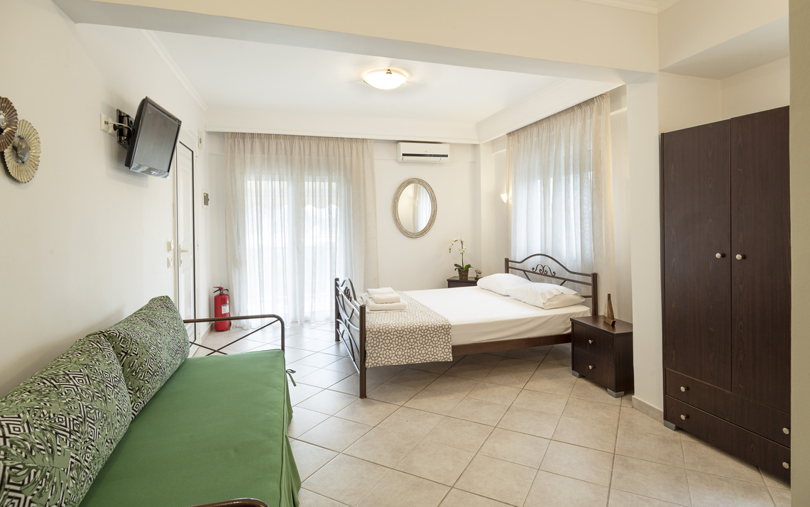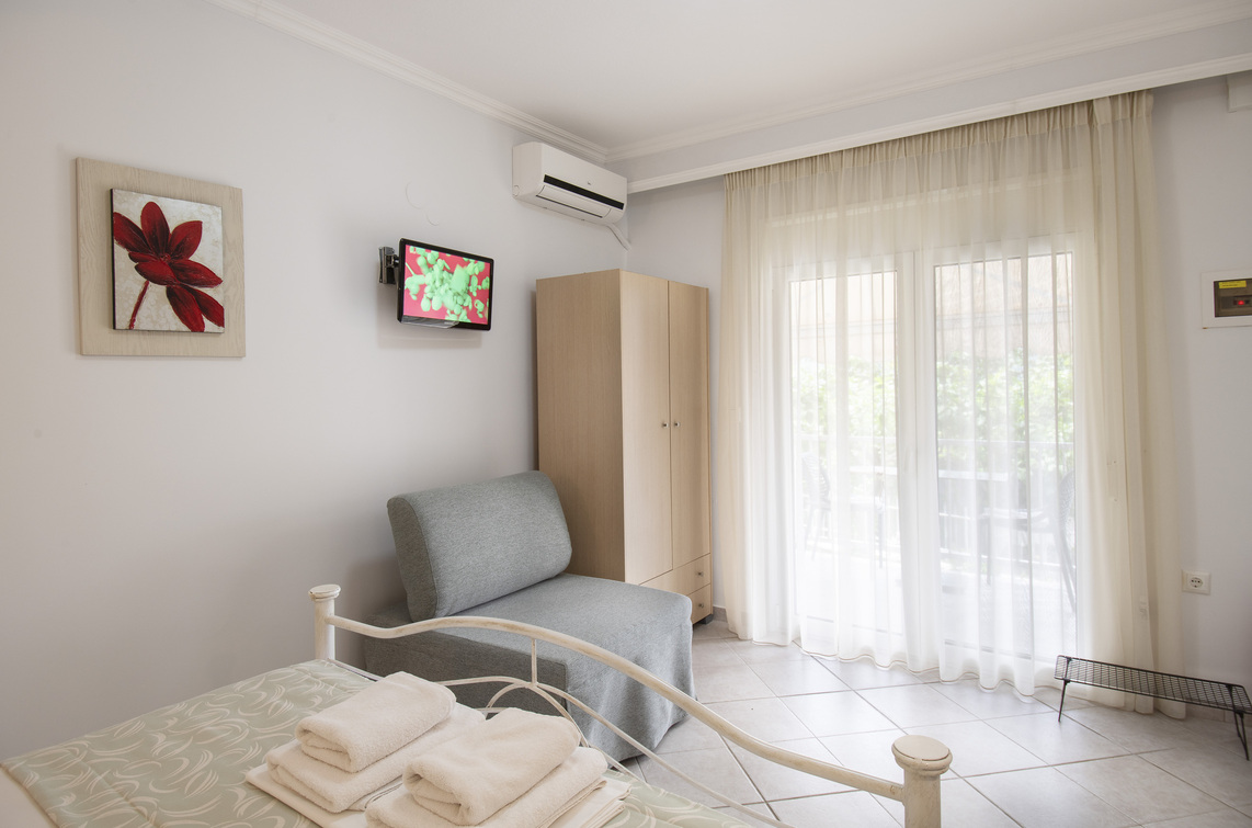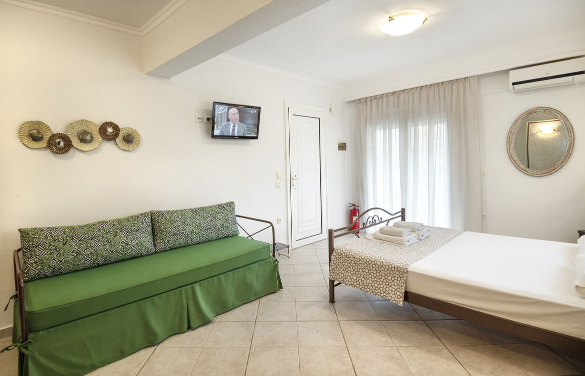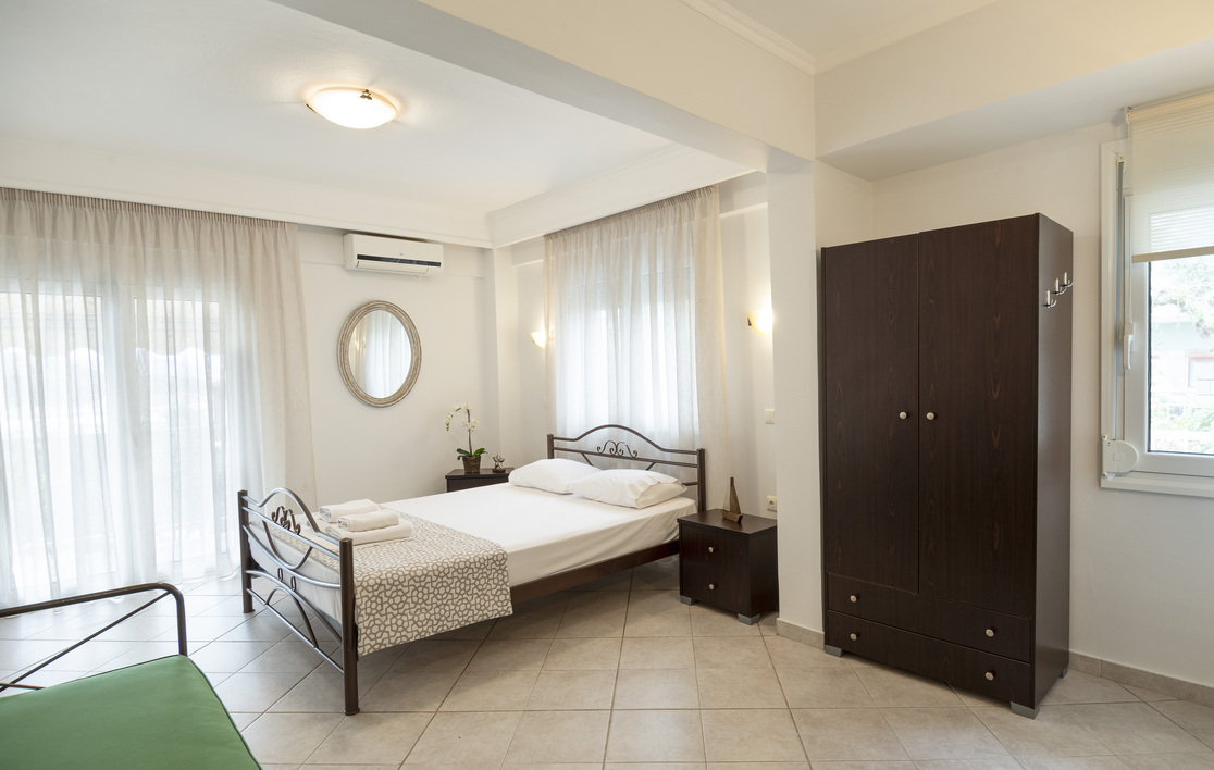 Our rooms are located in the center of Ammouliani, only 200 meters from the port. Here you may find 3 rooms fully renovated at the ground floor with yard, 2 doubles and one quadruple with fridge, AC, TV and Wifi Internet.