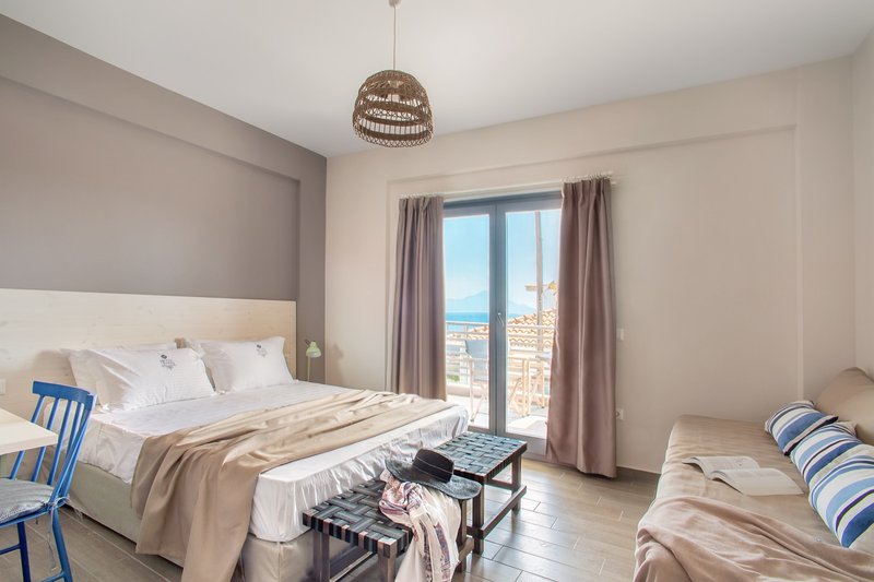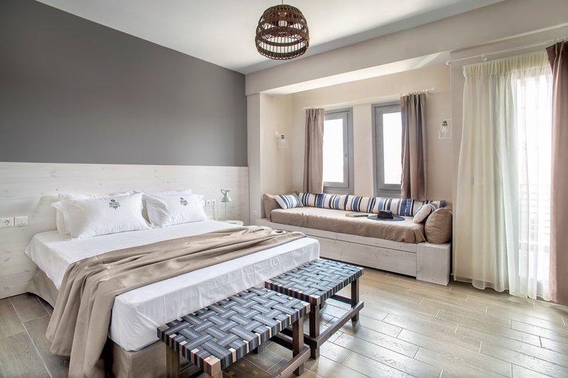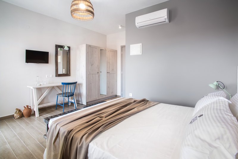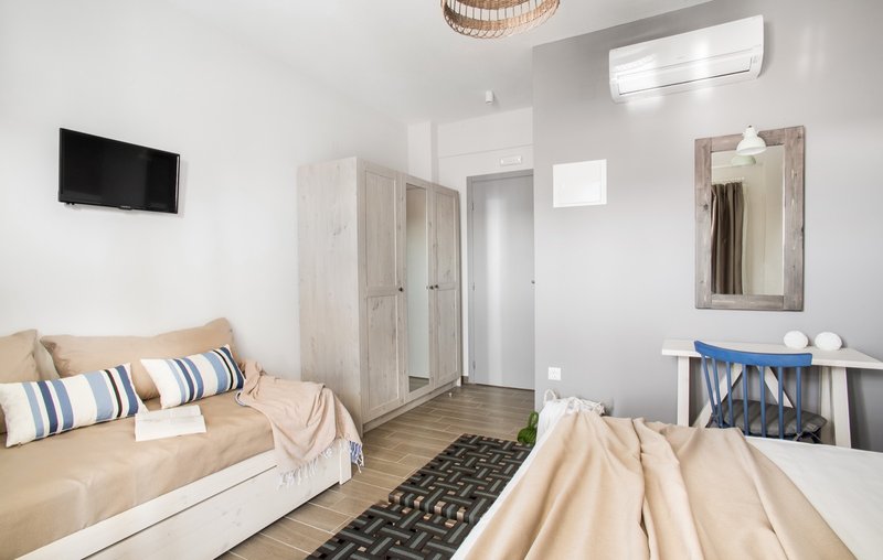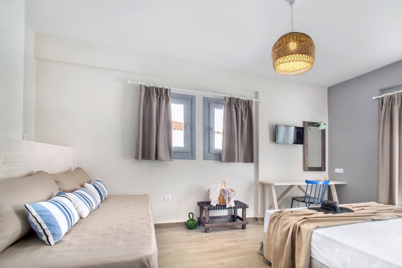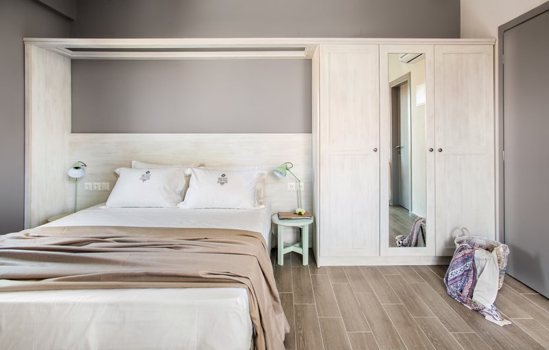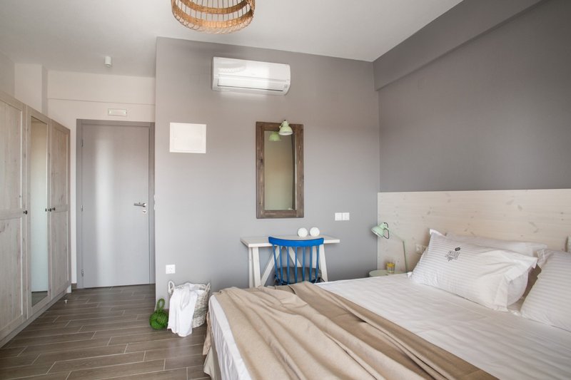 Five out of the nine available rooms have sea-view that makes the stay of our guests memorable. Nissos rooms offer double and triple rooms, fully furnished, with amenities such as air-condition, led TV, hair bath, care accessories, free Wi-Fi, safe, large private balcony, refrigerator etc.Moreover, for the easier mobility of our guests, an elevator is also available.