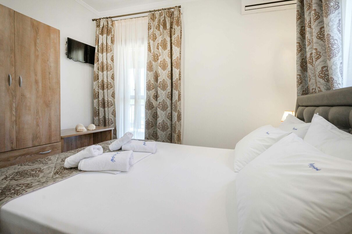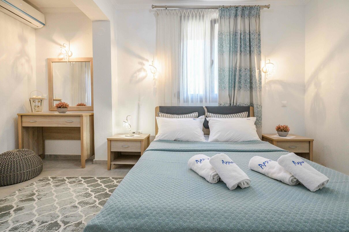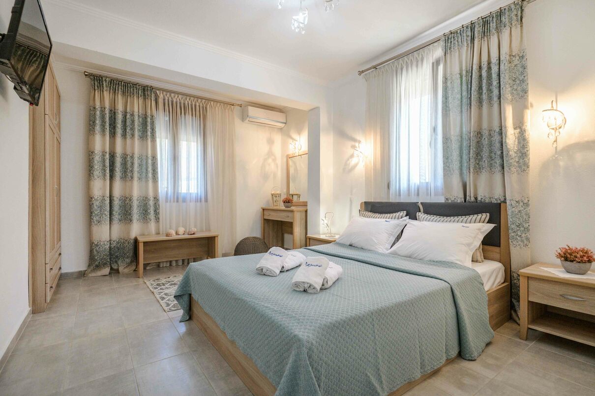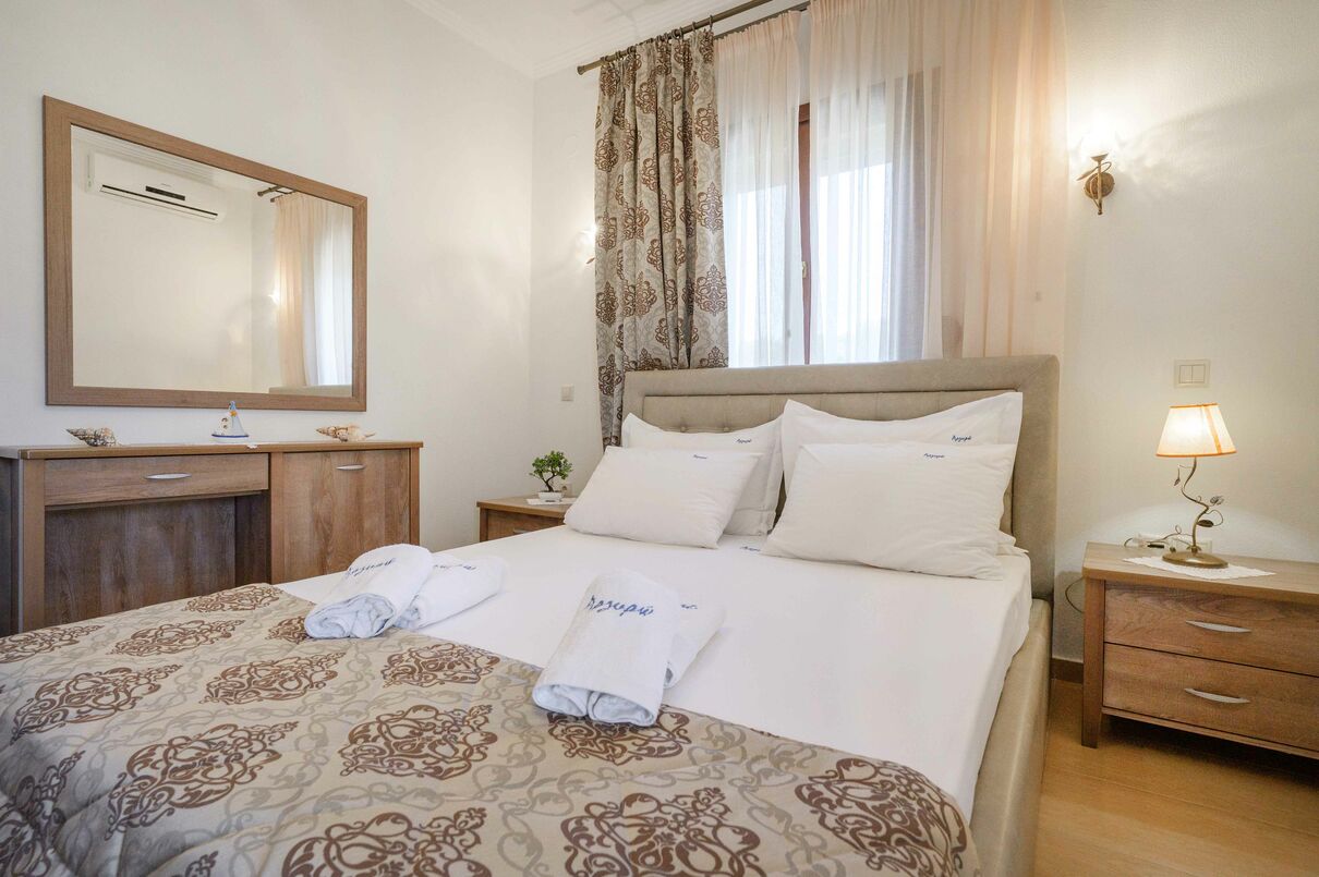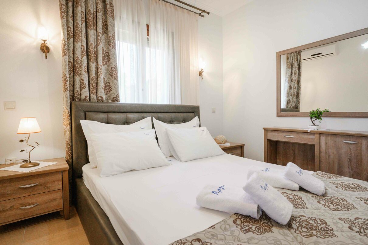 In the Estate AROZA….. VILLA ARGIRO, consists of 2 apartments that can accommodate up to 4 people each. Lots of modern facilities such as equipped kitchen with ceramic hob, air conditioning, flat TVs and big balconies. Located in a green grove of 0.5 acres offers its visitors the perfect harmony in the nature. The simplicity here is combined with the luxury.