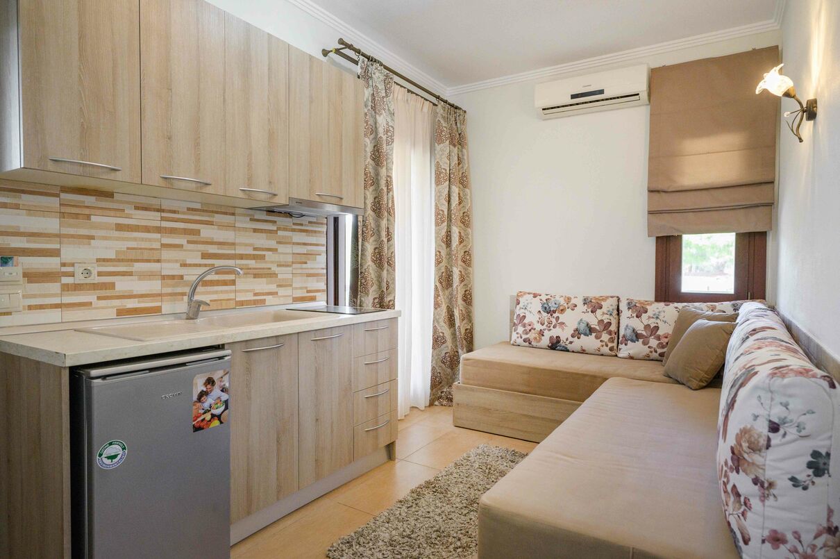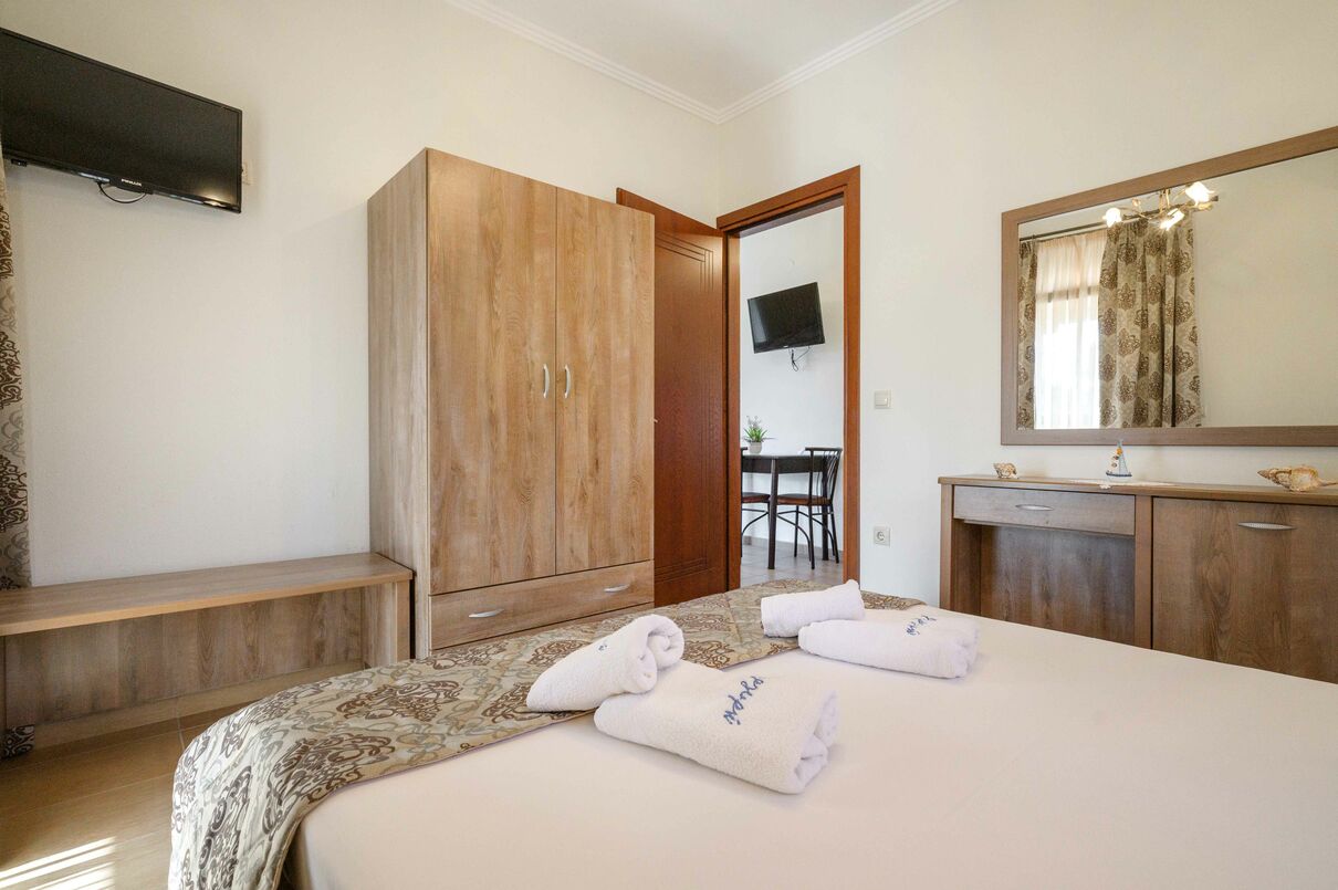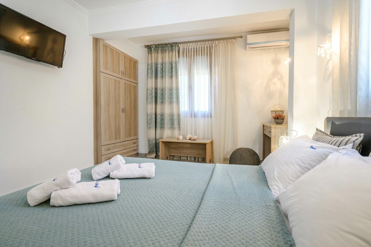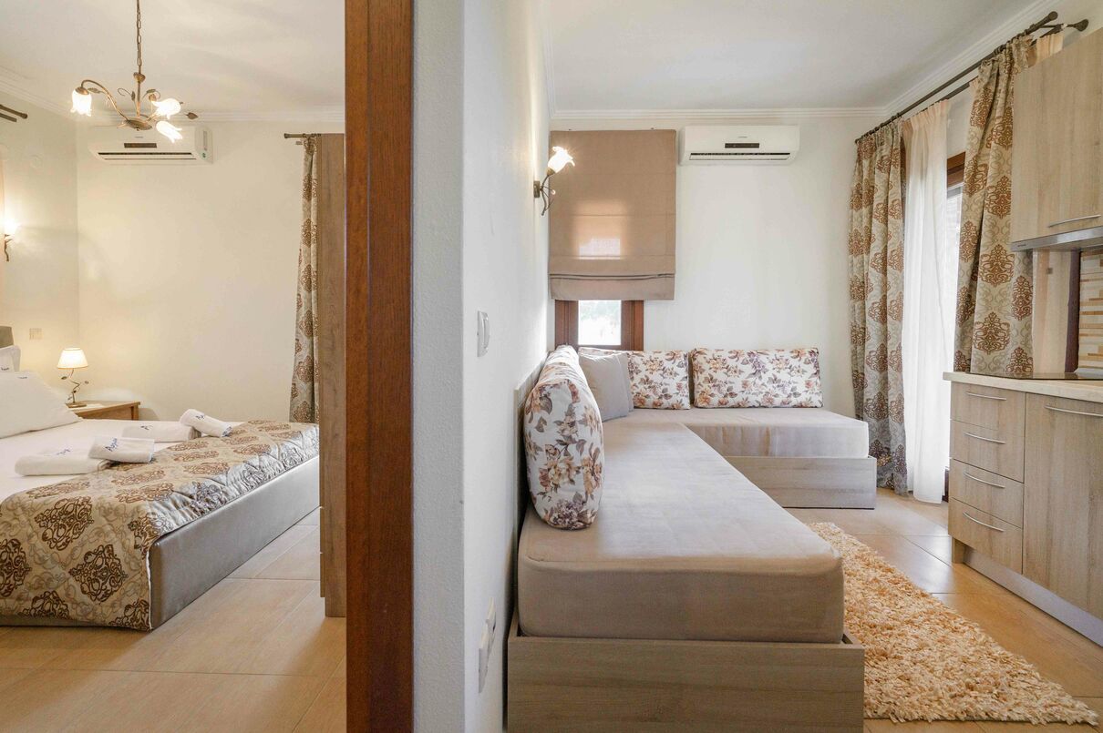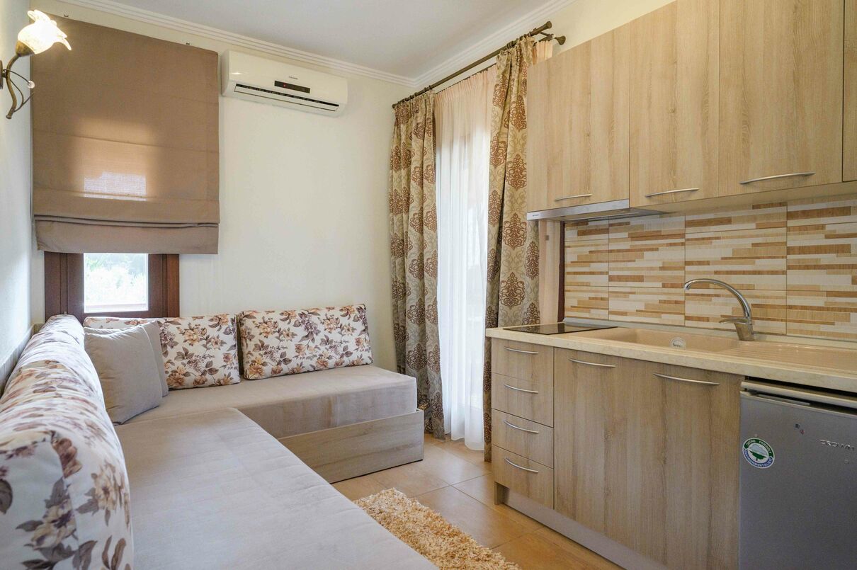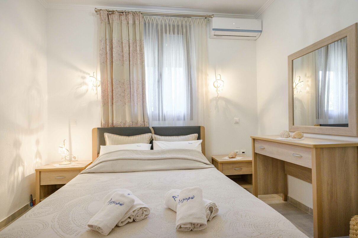 In the Estate AROZA….. VILLA ARGIRO, consists of 2 apartments that can accommodate up to 4 people each. Lots of modern facilities such as equipped kitchen with ceramic hob, air conditioning, flat TVs and big balconies. Located in a green grove of 0.5 acres offers its visitors the perfect harmony in the nature. The simplicity here is combined with the luxury.