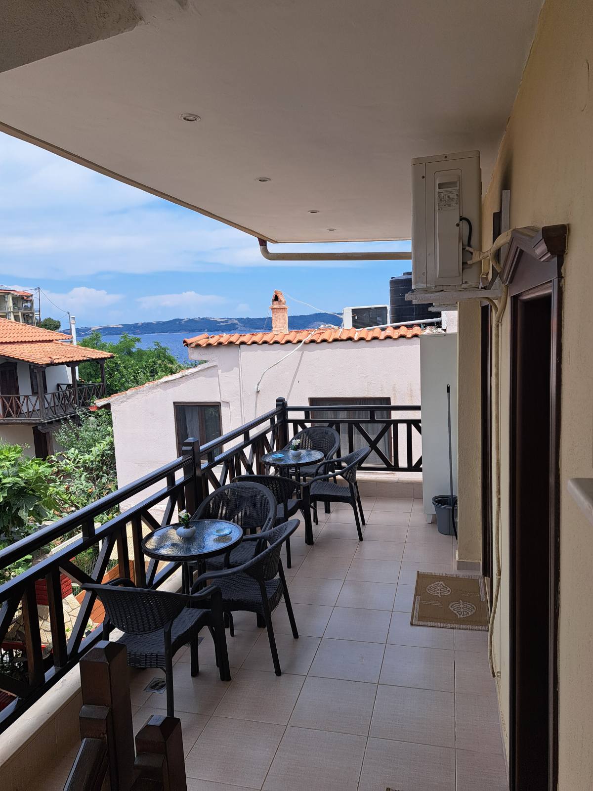 Each room has two large verandas and two facades with unlimited view in the sea, Ouranoupolis and Mount Athos.Within walking distance (10 and 100 meters) from Alkyonis there are two small beaches of the island that the visitor can enjoy morning or afternoon swimming.