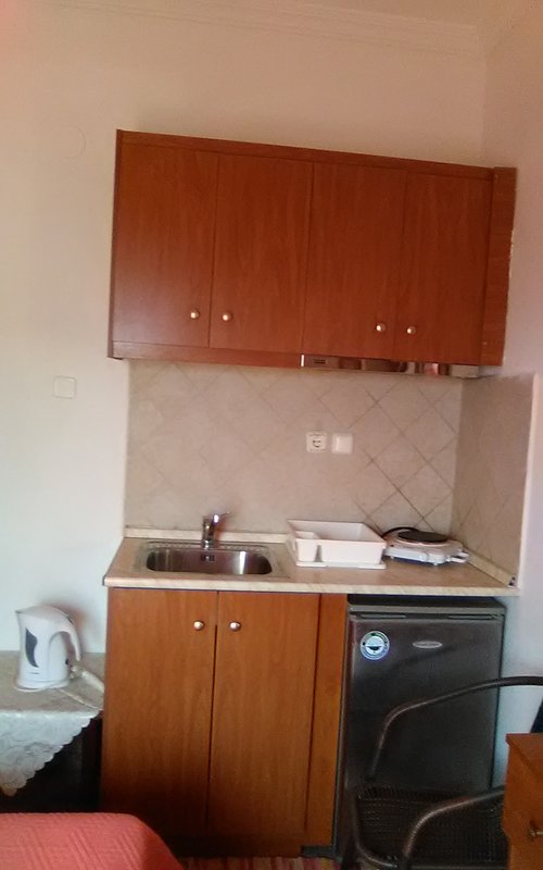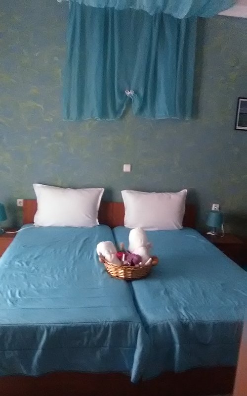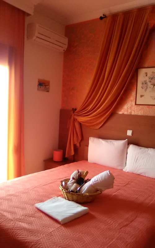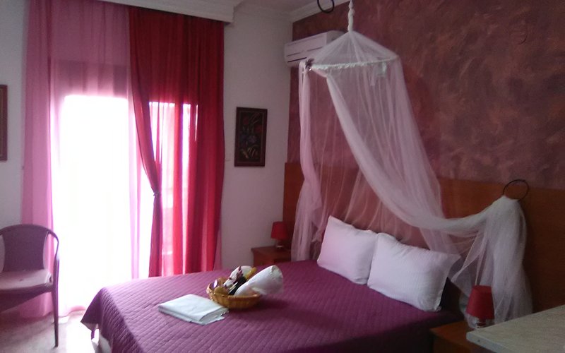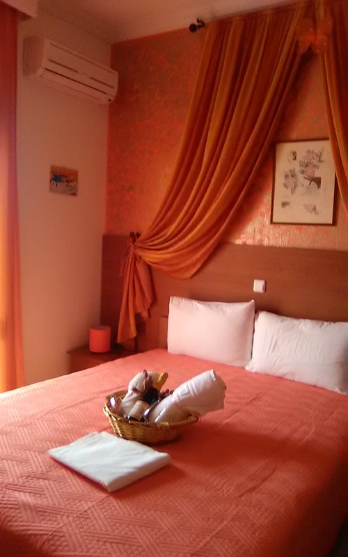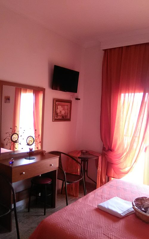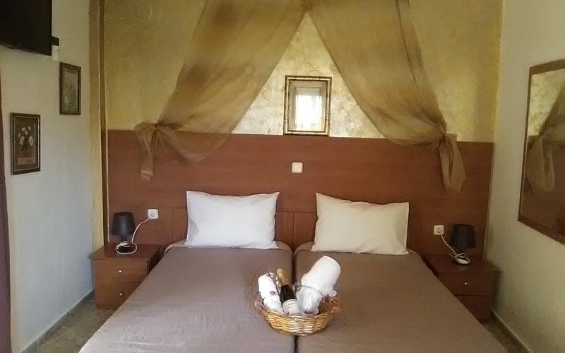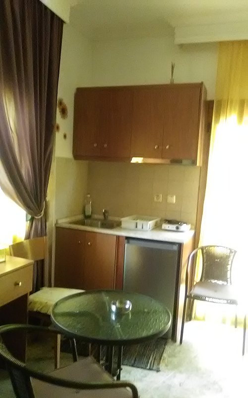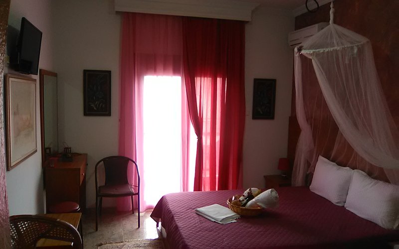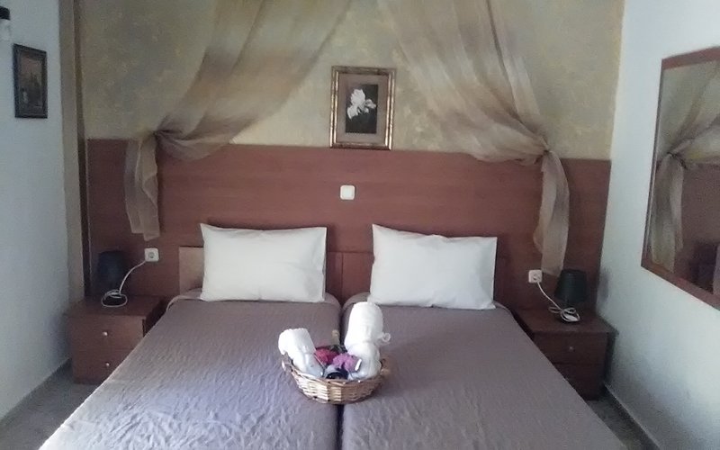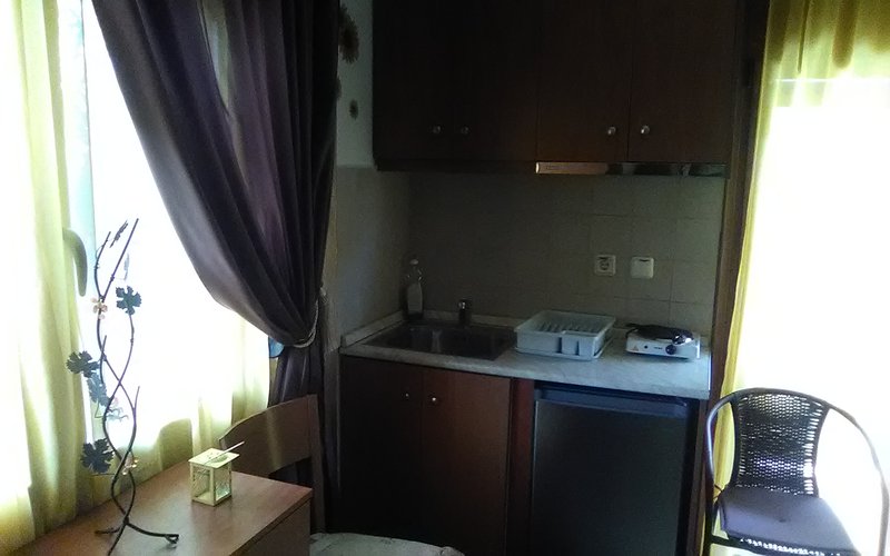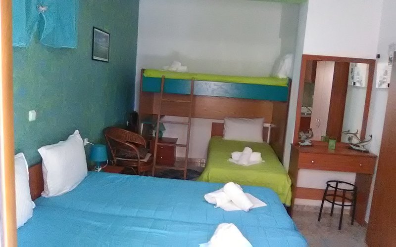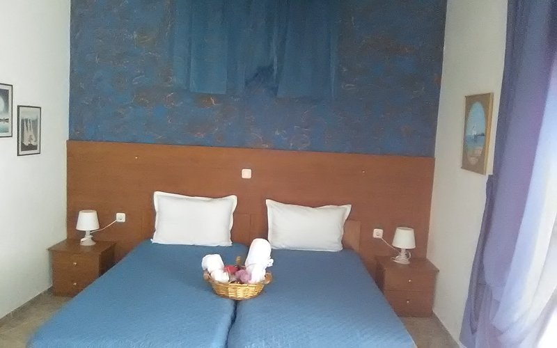 Our lodging is found at the center of the island, some meters above the harbour and near the market. The closest sandy beach is hardly 150metetrs away. Our rooms are recently renovated and provide, double and single beds, television, kitchenette, air conditioning and hair-dryer. Giota studios consists of seven rooms: Two double rooms Three triple rooms Two four bedded rooms Some of our rooms offer a beautiful view to the sea from their balconies.
